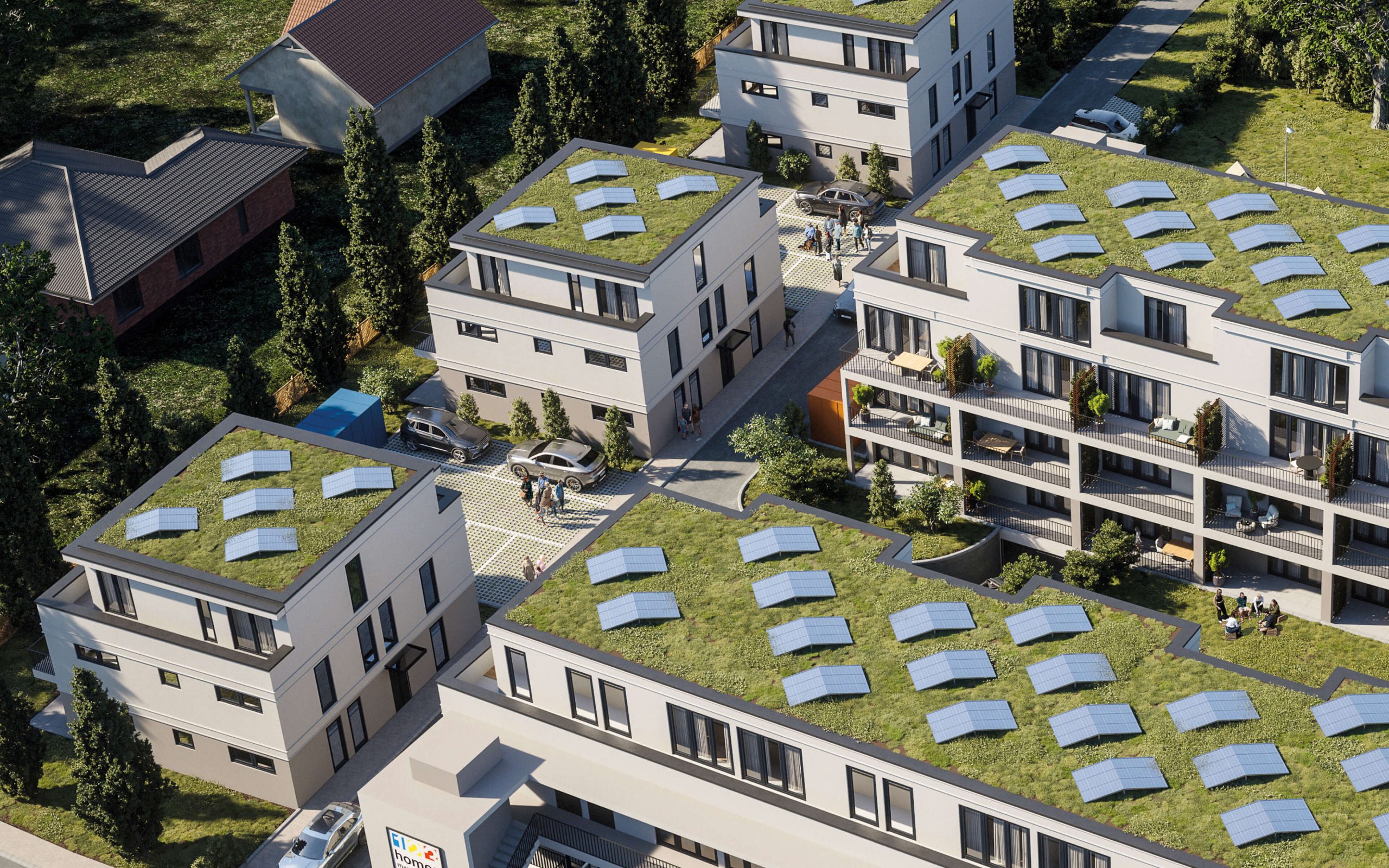 Die Gebäude werden nach dem KfW EH40- und dem QNG Plus-Standard errichtet – der aktuell